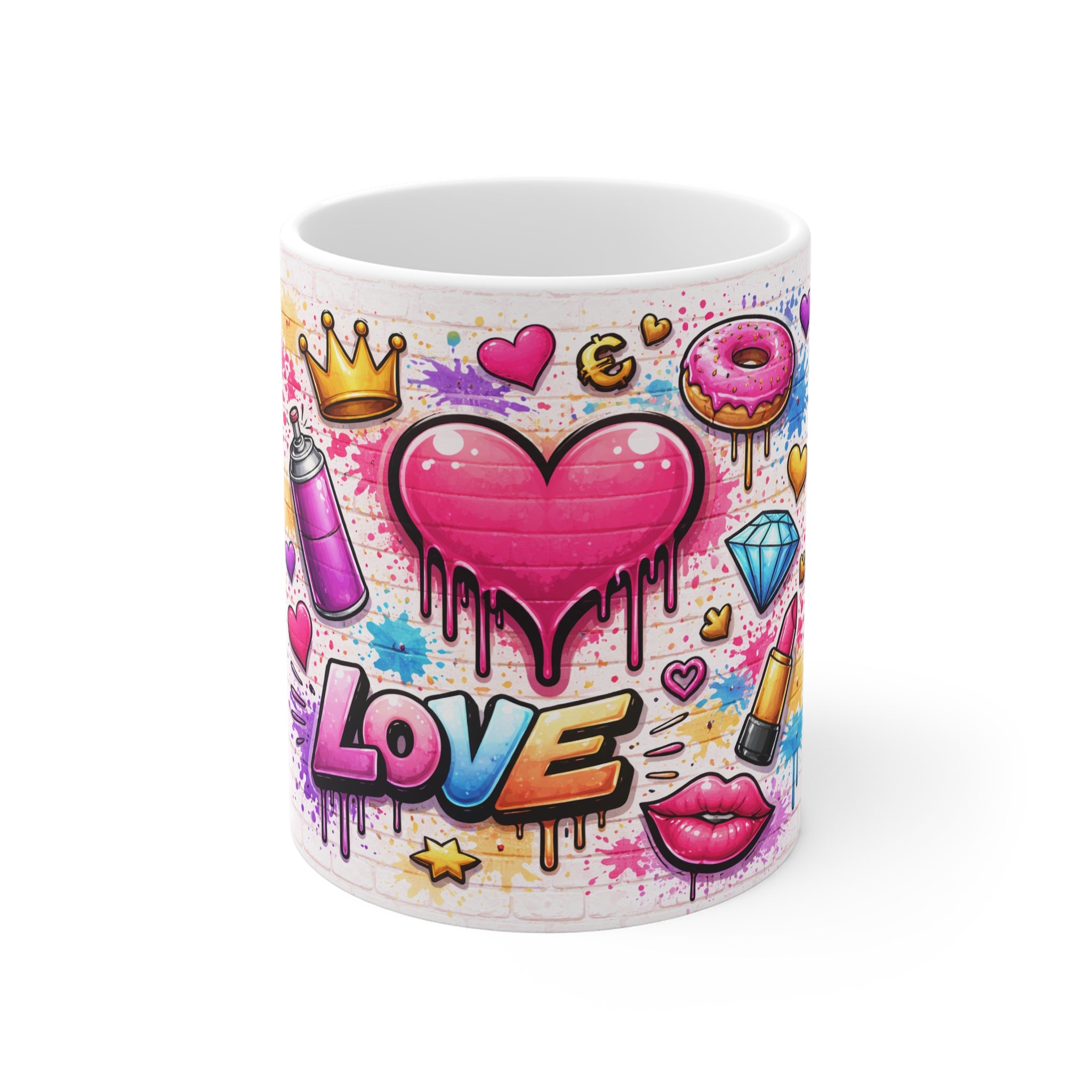 Turn every coffee break into a statement with the Urban Love Graffiti Mug. Inspired by modern street art and vibrant city vibes, this design features bold graffiti elements, dripping paint effects, and striking pops of color that bring energy and attitude to your daily routine.